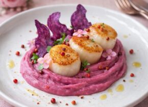 Recette de la Saint-Valentin : Noix de Saint-Jacques “Flamme d’Amour”, purée de patate douce rose.