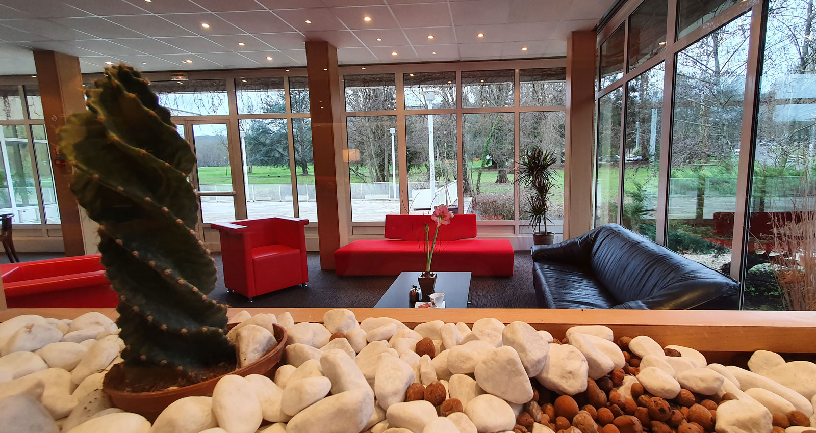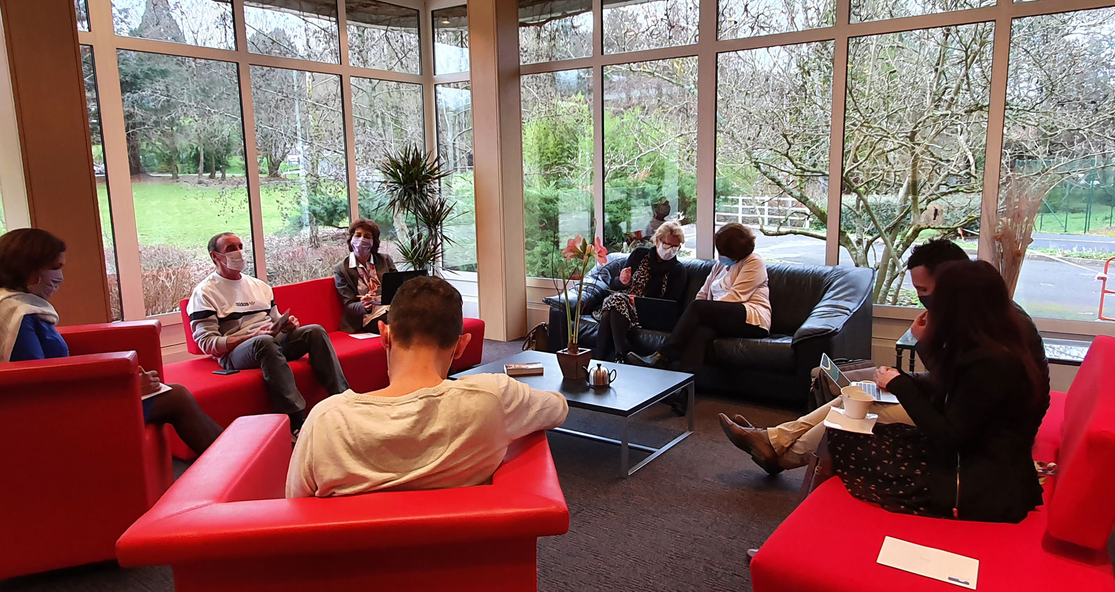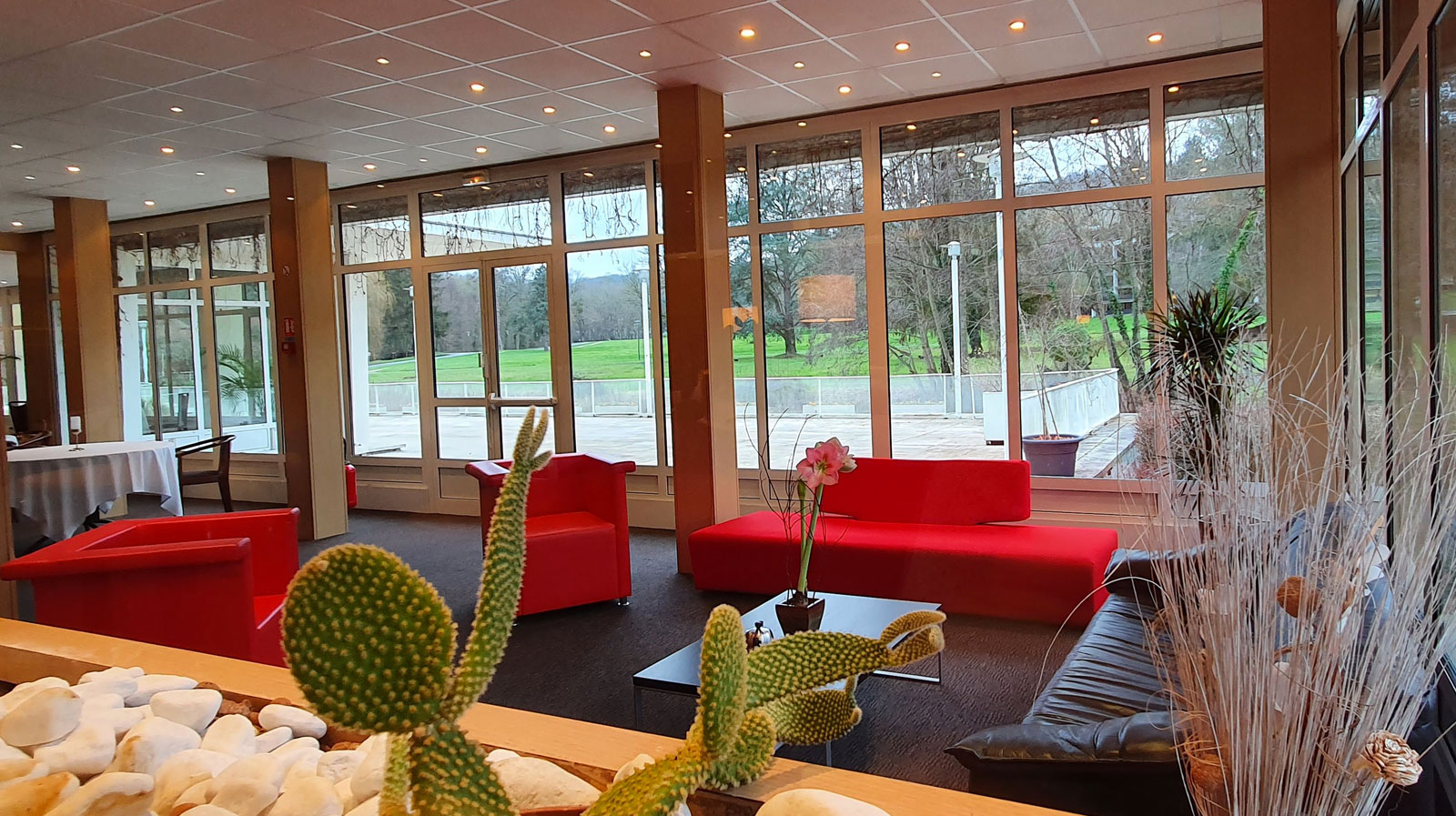 Le petit plus : cet ensemble moins académique qu’une salle conventionnelle ouvre l’horizon sur nos grandes prairies et sur l’étang ! Ambiance décontractée, créative et efficace assurée !